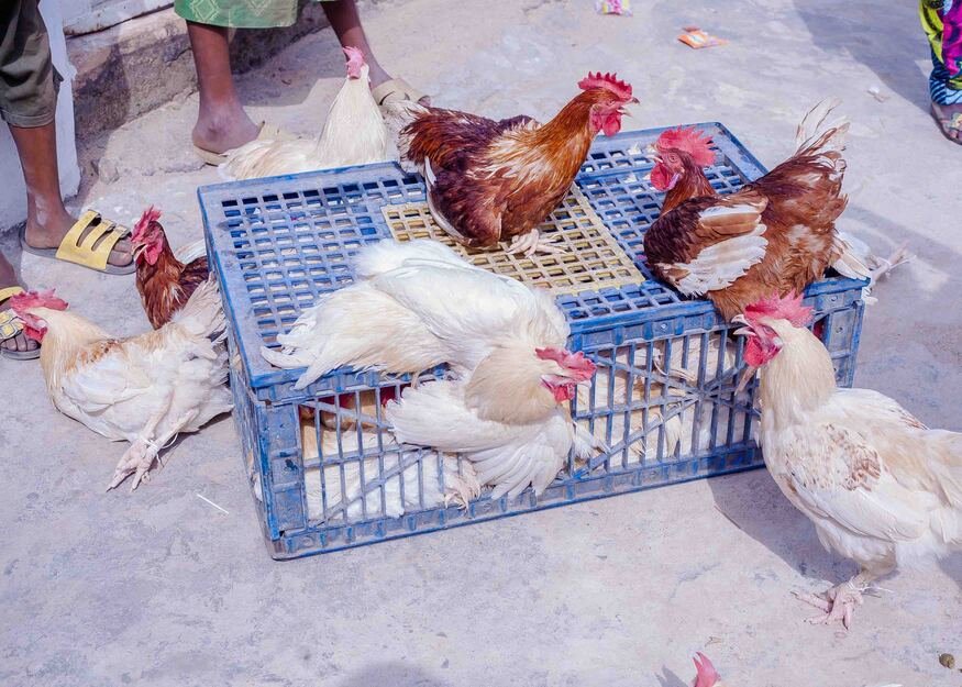A total of 30 live chickens were shared between the widows, along with a 7 kg bag of rice and vegetable oil. Others also went home with rice and vegetable oil and cash.