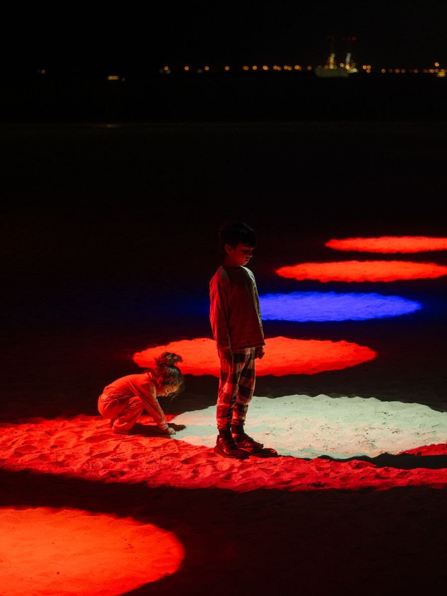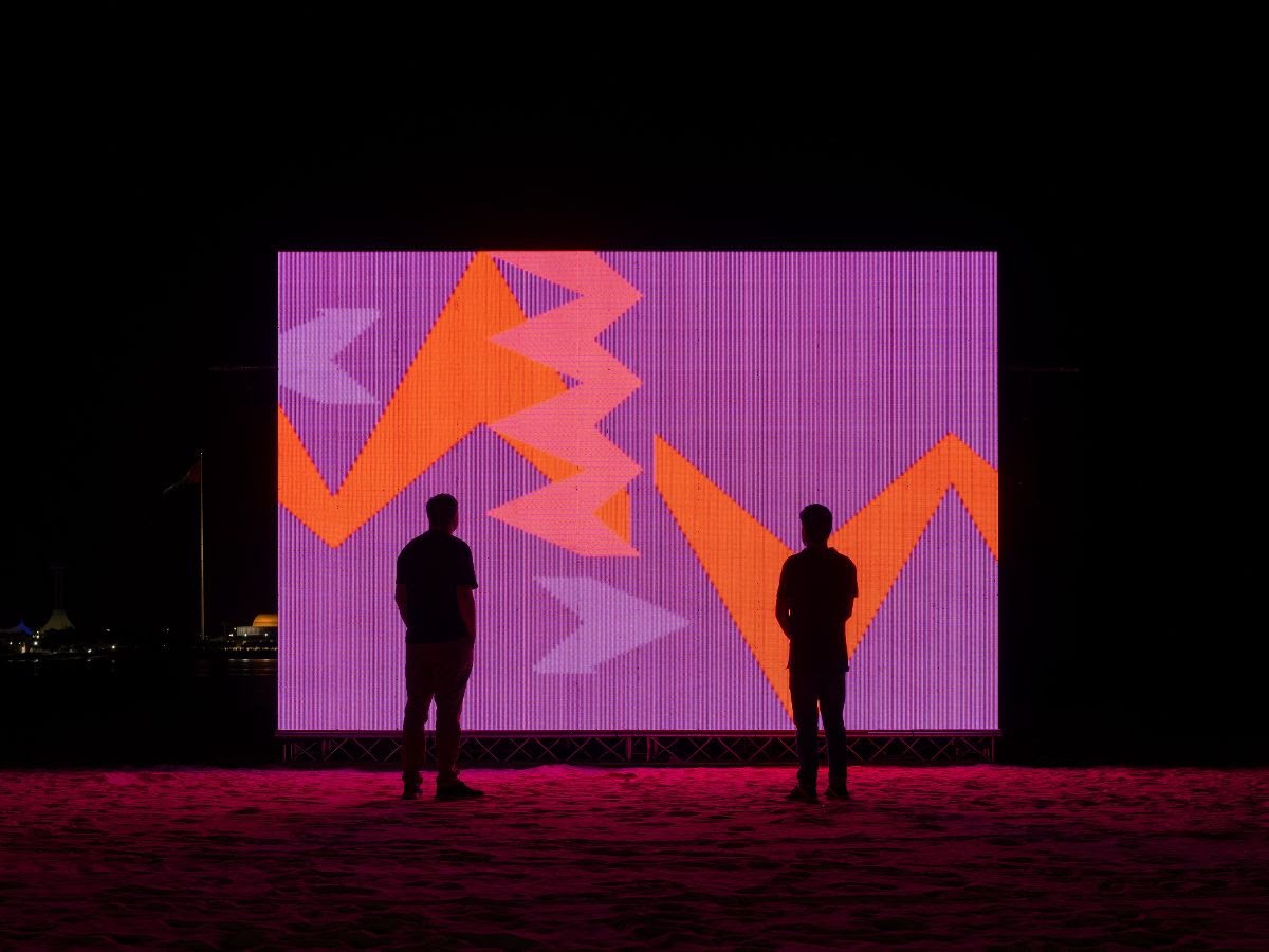 On Fahid Island, Jim Denevan has created Self Similar, a monumental land art installation illuminated by 432 solar lanterns, where towering clouds and tiny grains of sand coalesce into a symphony of interconnectedness. Meanwhile, Rafael Lozano-Hemmer takes over Lulu Island with Translation Island, an interactive journey through 10 large-scale audiovisual multimedia artworks. An ambitious technological tour de force, the works employ ultrasonic atomizers, Geiger counters and thermal cameras, among other equipment.