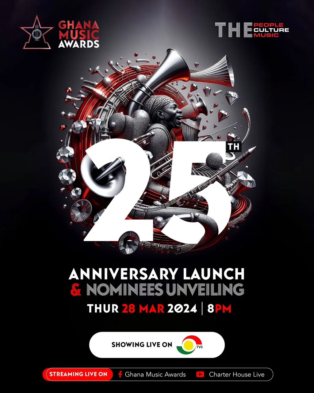 The 25th edition of the Ghana Music Awards will be launched on Thursday, March 28th, 2024 at the Grand Arena of the Accra International Conference Centre.