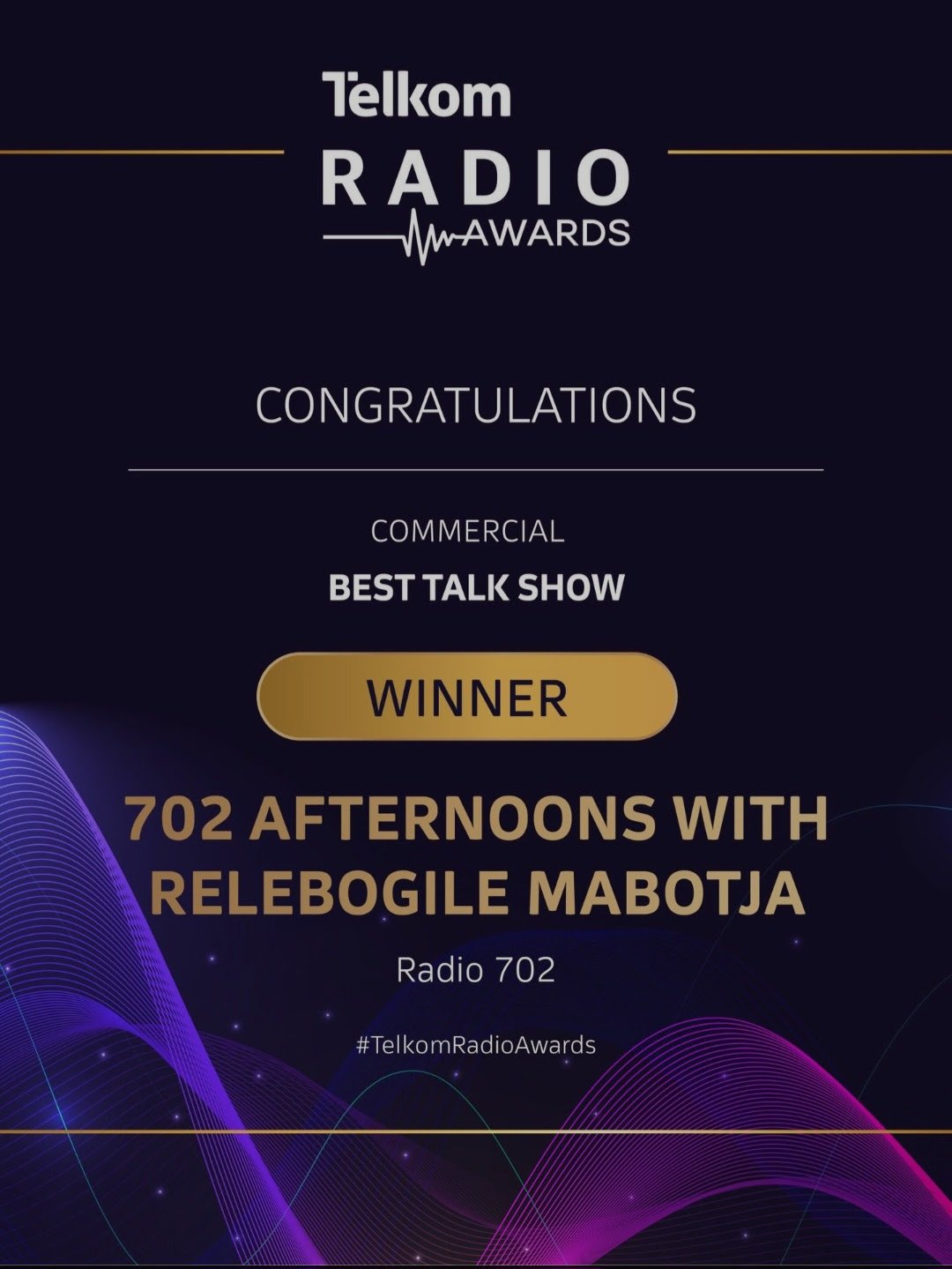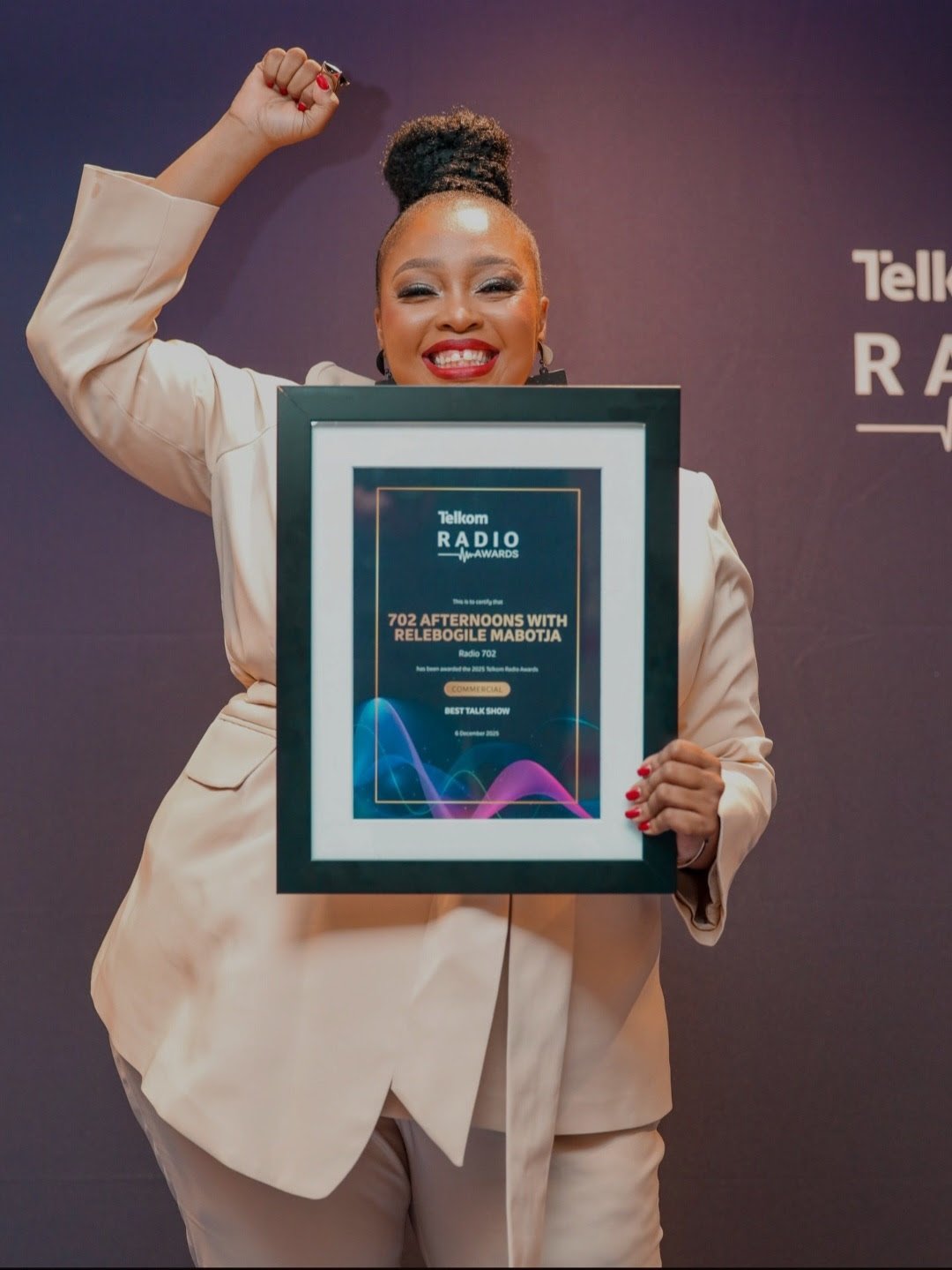 In receiving this award, and with twelve years in radio, Relebogile Mabotja extends heartfelt gratitude to the 702 and Primedia team, as well as her producers, Pachida Mabisi and Abel Mabelane, whose partnership and commitment she describes as integral to the show’s success.